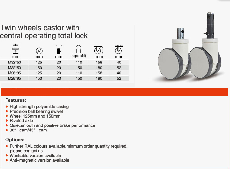 We are being re-design the twin single wheels & dual wheels central lock casters now. Will present our client a better & more fashion products.