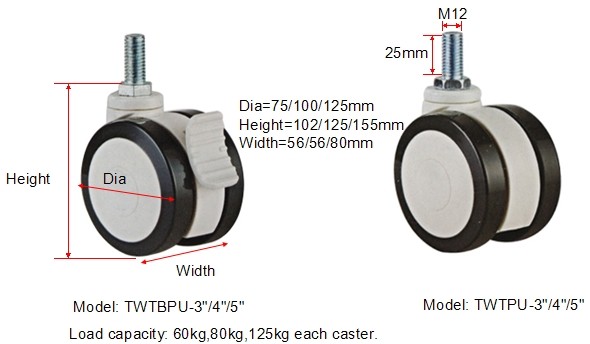 Loading capacity:60kg , 80kg, 125kg for each caster